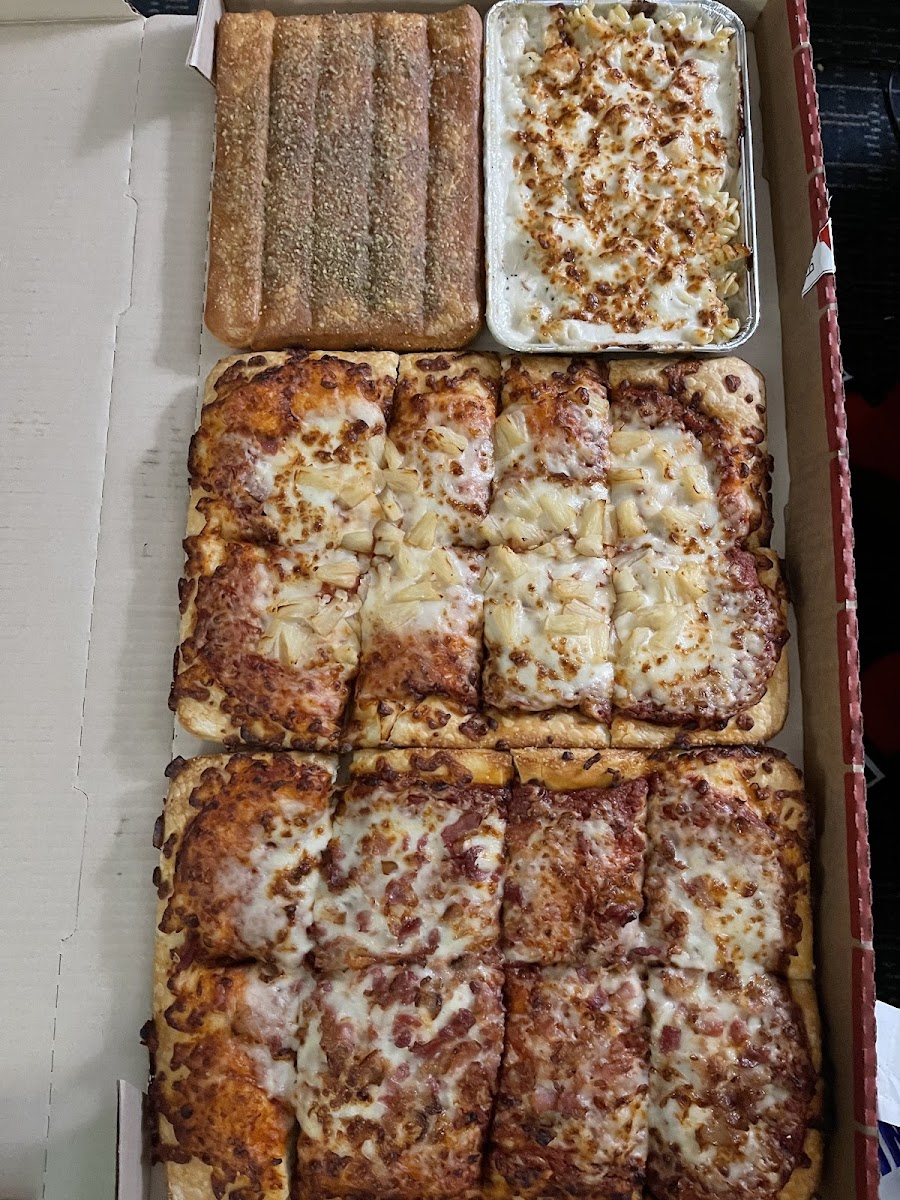 Now, let’s talk food. The Pepperoni Lovers Pizza is a true crowd-pleaser-loaded with layers of crispy pepperoni and gooey cheese. If you like something bold, the Spicy Chicken Sausage Pizza packs just the right punch. Fans of tropical flavors can’t go wrong with the Hawaiian Pizza, while the Meat Lovers Pizza is a feast for those who believe in going all in. Around Valentine’s Day, the Heart-Shaped Pepperoni Pizza steals the show-a romantic twist that’s perfect for sharing.